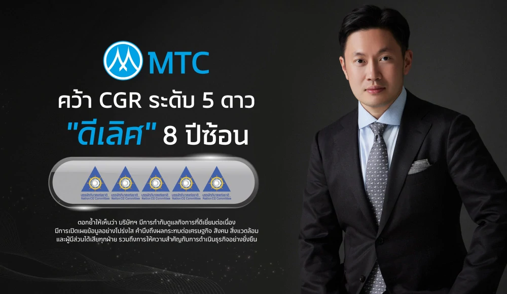 MTC คุณภาพแน่นปึ้ก! คว้า CGR ระดับ 5 ดาว “ดีเลิศ” 8 ปีต่อเนื่อง ตอกย้ำการกำกับดูแลกิจการที่ดี