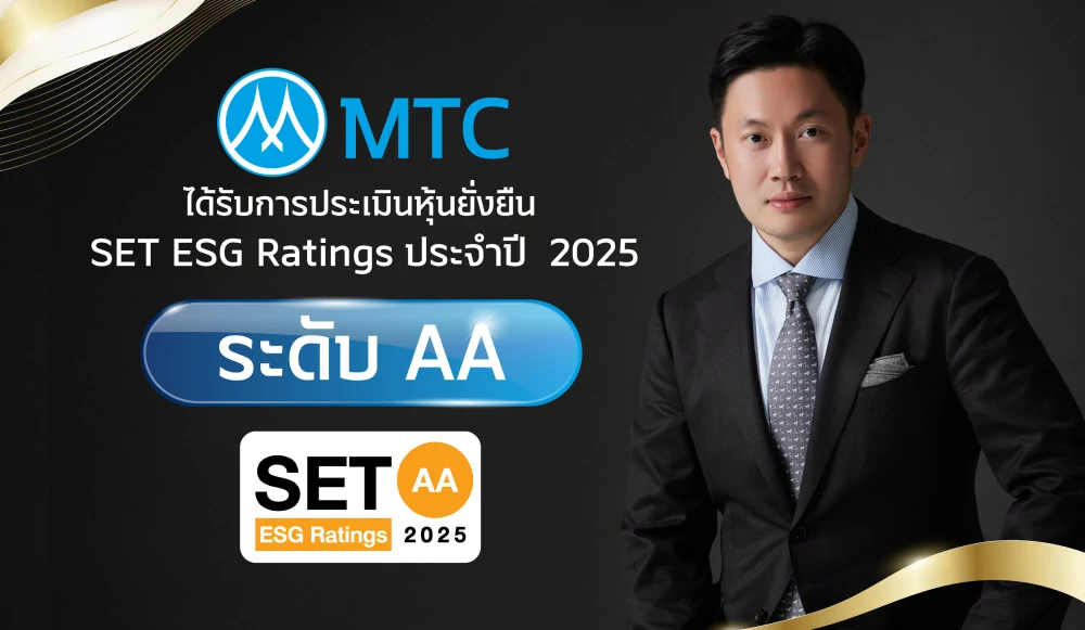 MTC คว้า ESG Ratings ระดับ ‘AA’ สะท้อนแนวทางการดำเนินธุรกิจอย่างยั่งยืนบนมาตรฐานระดับโลก
